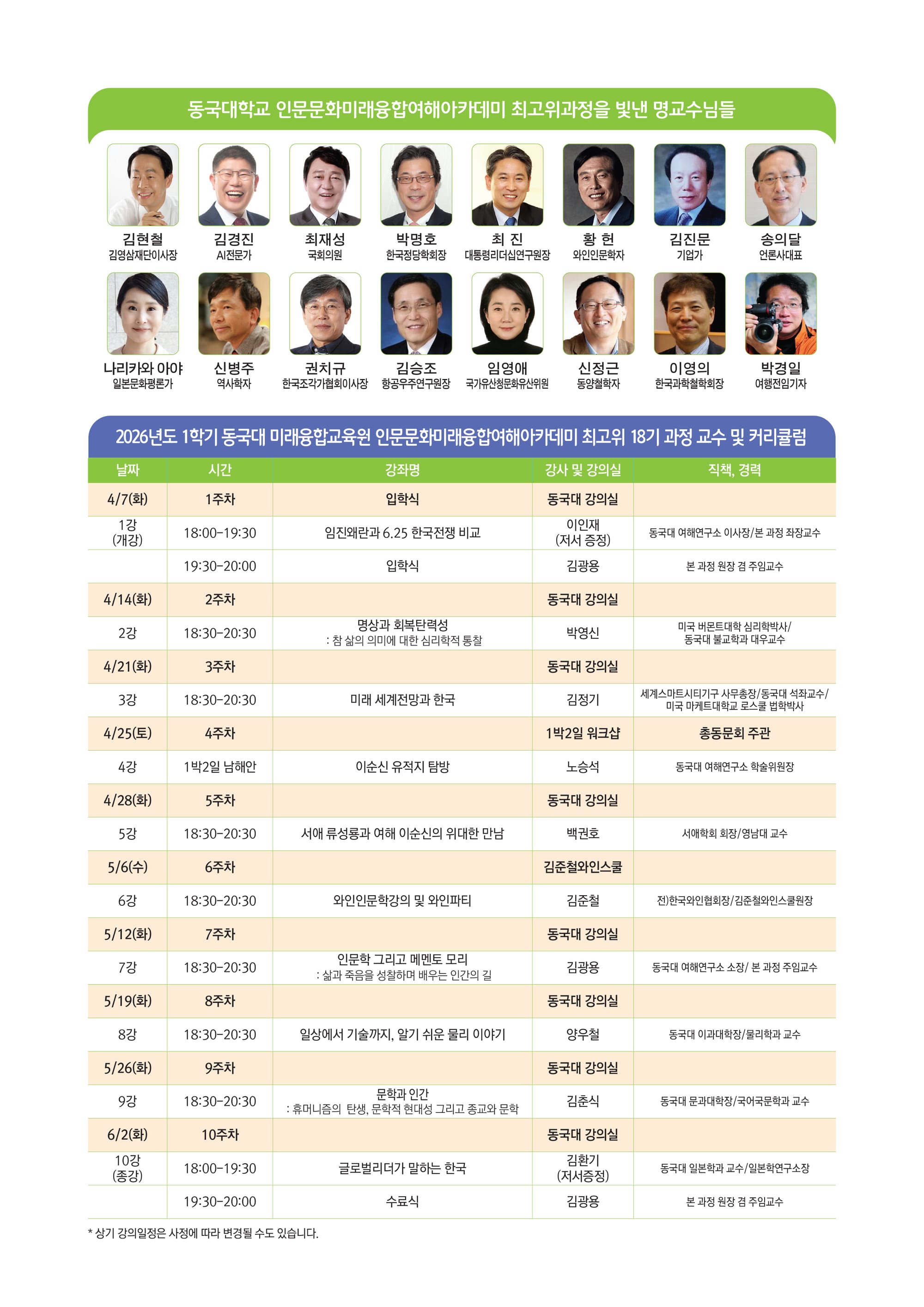 동국대 ‘인문문화미래융합여해아카데미’ 통합18기 원우모집
