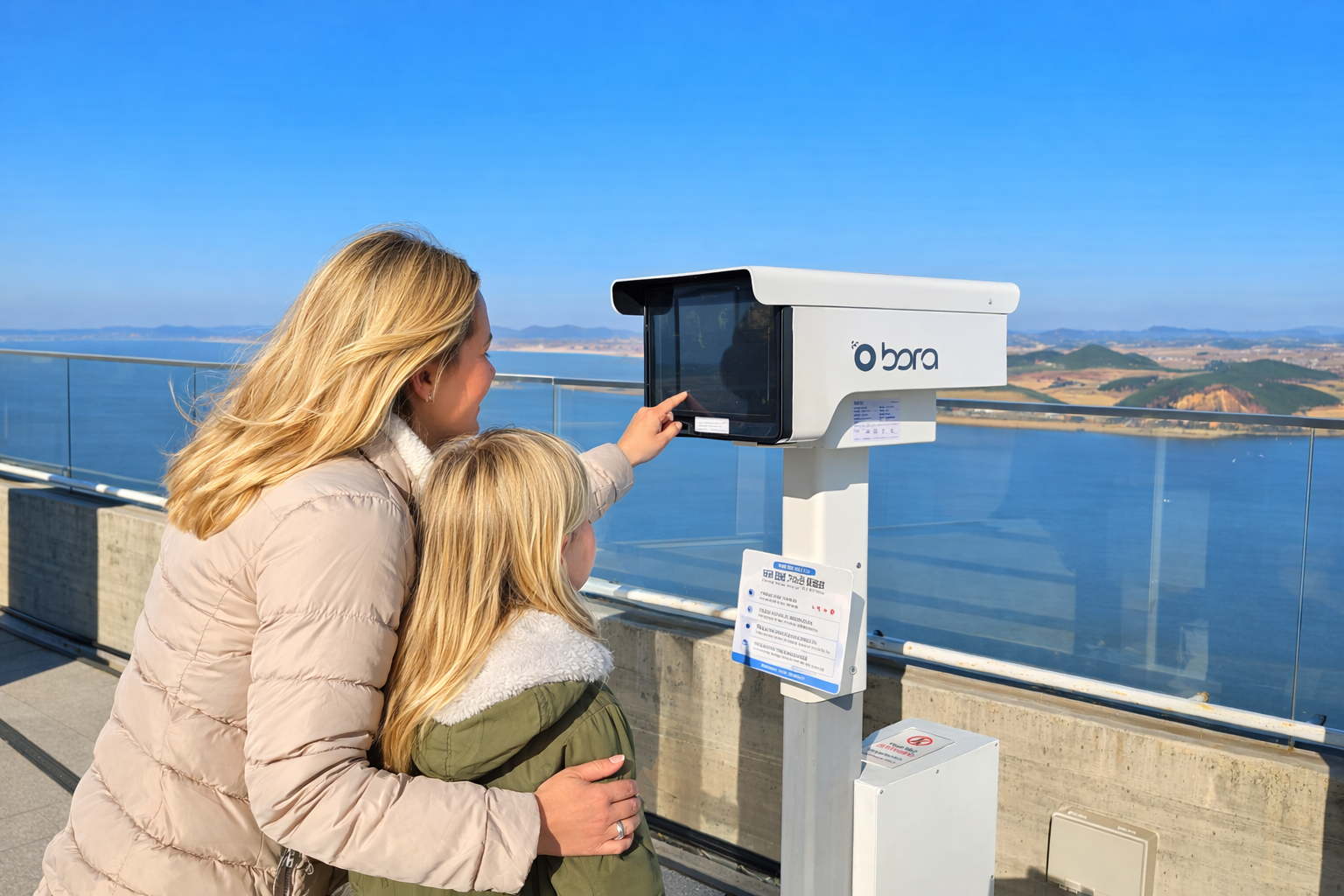 이러한 해상 상공의 전망대는 사방에서 몰아치는 극심한 강풍과 해무, 염분 등 정밀 IT 기기가 살아남기에 가장 가혹한 환경을 자랑합니다. BORA가 이 까다로운 설계 조건과 극한의 환경 테스트를 모두 통과하여 설치 확정을 받았다는 것은 오썸피아의 딥테크 역량이 한계 상황에서도 완벽히 작동하는 세계 최상위 수준임을 스스로 입증한 셈입니다. 사방이 통유리로 제작된 이 전망대에서, 관람객들은 스카이BORA의 강력하고 유용한 기술 및 콘텐츠 서비스를 통해 흐린 날씨 속에서도 늘 맑은날 버전을 감상할 수 있으며, 서해 낙조 등 아름다운 전망을 고해상도로 조망하는 놀라운 경험을 하게 될 것입니다.