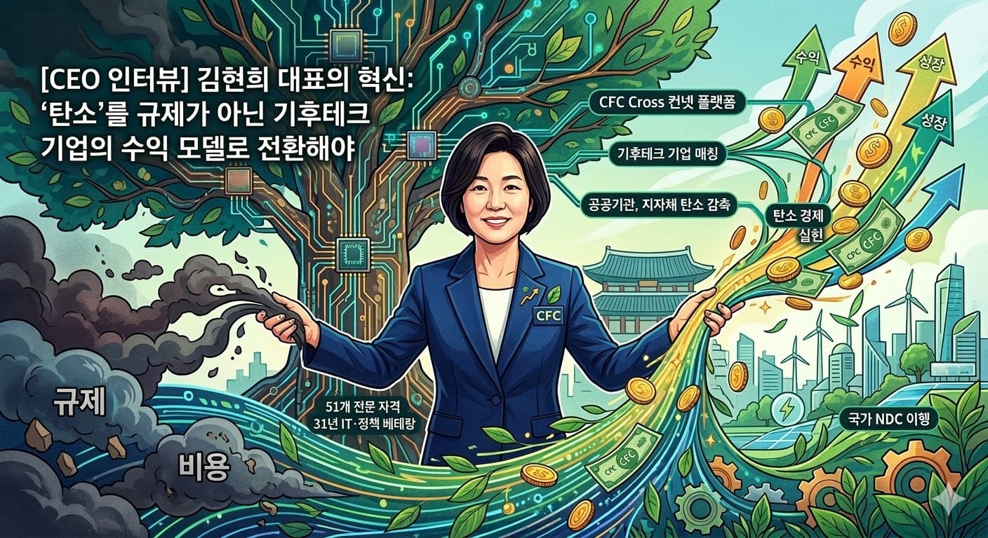 31년의 내공이 느껴지는 김현희 대표의 목소리에는 확신이 가득했다. IT 기술과 환경 정책, 그리고 뜨거운 사명감이 결합된 씨에프씨의 행보가 대한민국 탄소 경제의 지형도를 어떻게 바꿀지 귀추가 주목된다.